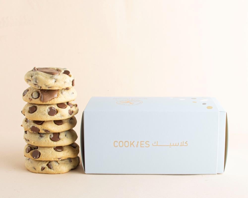 كوكيز بعدد ٧ حبات محشي بقطع الشوكلاتة اللذيذة .